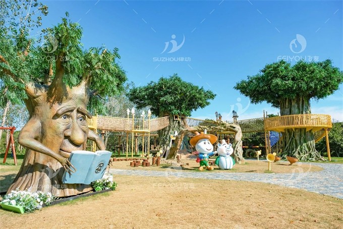 奇趣大地是一個以丘陵和山谷地形為主題的游樂場地,通過這道拱形大門,昭示著孩子們將要開始一次森林探險的快樂旅程。 -