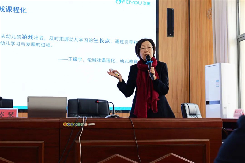 次日,飛友學(xué)前教育研究院院長林炎琴作了《幼兒園游戲與課程的融合》專題分享,她強(qiáng)調(diào),幼兒園課程應(yīng)以幼兒為本,無論園本課程還是班本課程都應(yīng)真正基于兒童實際,以游戲為基本活動,在游戲和生活中及時把握幼兒學(xué)習(xí)生長點,通過師幼有質(zhì)量的互動,建構(gòu)適宜性課程,促進(jìn)幼兒全面發(fā)展。