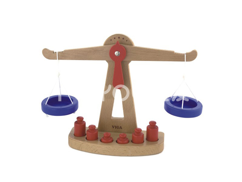 一組非常穩(wěn)固結(jié)實的棒木做的天平和塑料托盤??稍谔炱降膬啥朔謩e放進不同的物體,進行重量比較,幼兒還可以先猜一猜,再稱一稱,可搭配袪碼使用。學習等量和平衡的測量概念,理解數(shù)與量的對應(yīng)關(guān)系。