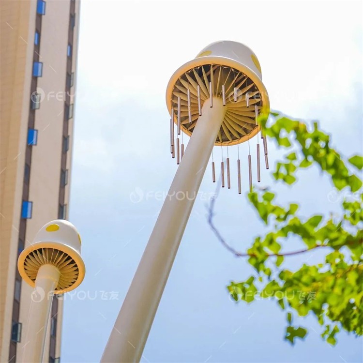 設(shè)計師結(jié)合蘑菇的構(gòu)造,將蘑菇頭的褶皺藝術(shù)化為蘑菇燈,蘑菇菌絲設(shè)計成風(fēng)鈴。夜風(fēng)吹拂下,在靜謐的草叢里揚(yáng)起輕盈的旋律。