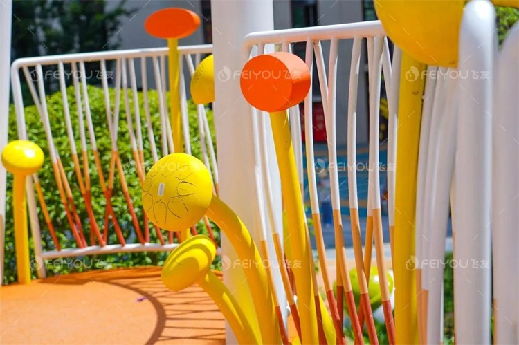 在蘑菇園里,怎能缺少音樂呢?設(shè)計師在上層路線上布置了各種樂器,如蘑菇風(fēng)鈴、敲擊樂器和蘑菇鼓等,仿佛隨時都可以來一場小型音樂會。而藏在叢林中的蘑菇手琴,能彈奏出動聽的音樂。風(fēng)吹過,夜幕降臨的時候,蘑菇燈如夜空中的星星微微閃爍,帶給孩子們無限的遐想。
