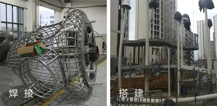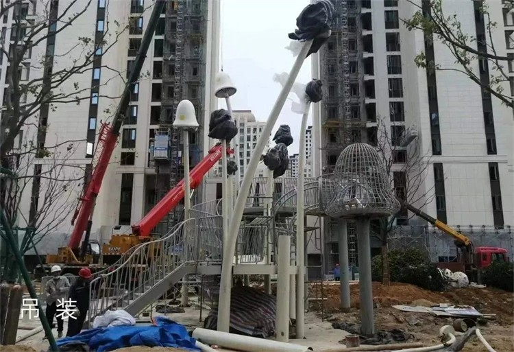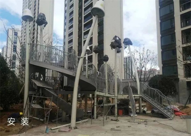 整個蘑菇結(jié)構(gòu)經(jīng)過工人一點(diǎn)點(diǎn)打磨,表面光滑細(xì)膩,保證成品與最初的設(shè)計模型完全吻合,工人對拼接焊接進(jìn)行嚴(yán)格的把控,確認(rèn)無誤后再到場拼裝上漆。運(yùn)輸?shù)浆F(xiàn)場進(jìn)行吊裝,整體拼裝過程進(jìn)行了精細(xì)化的打磨,以保證落地的準(zhǔn)確性。根據(jù)現(xiàn)場情況,爬網(wǎng)可調(diào)節(jié)高度、傾斜度,在爬網(wǎng)扶手處做好防護(hù)。